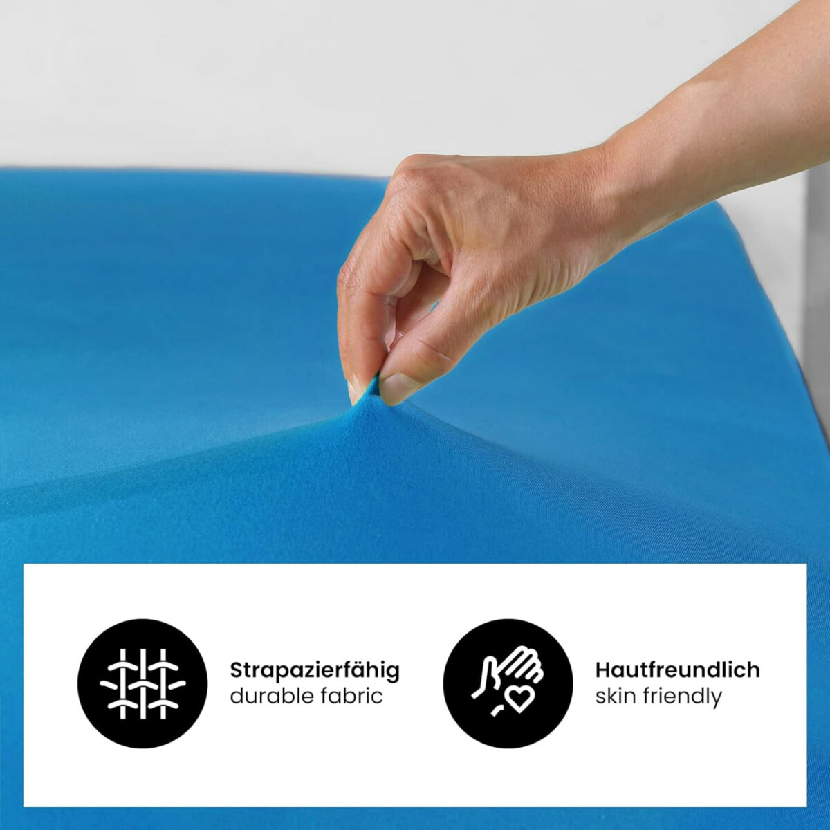 Наматрасник з трикотажу виготовлений зі 100% бавовни та важить прибл. 130 г/м², підходить для стандартних матраців і з висотою краю прибл. 20 см (+/-).